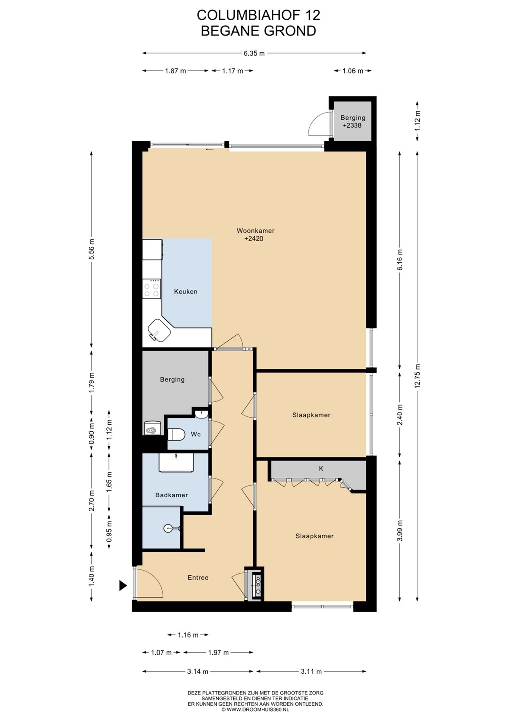 | Aantal kamers | 3 (waarvan 2 slaapkamers) |