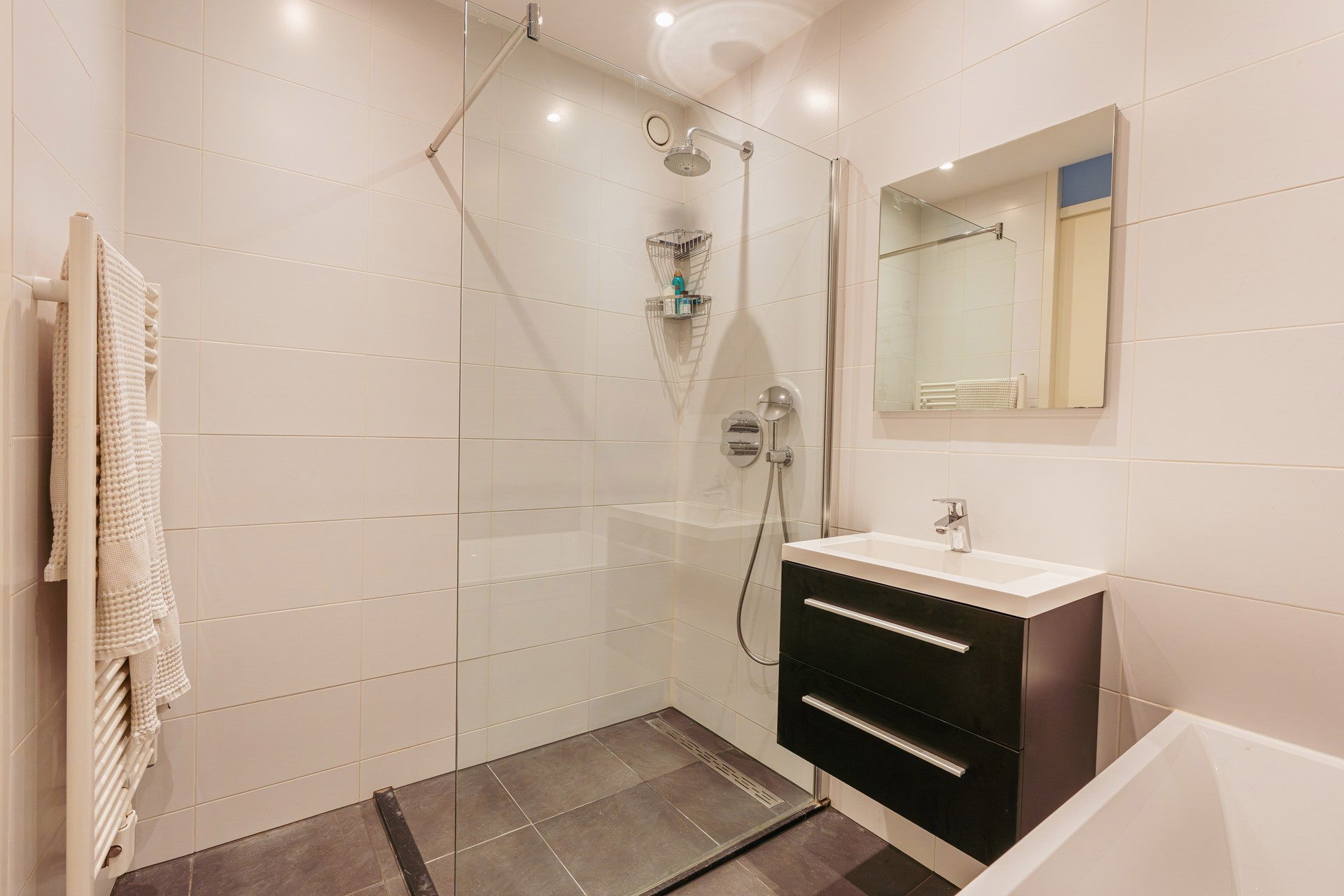 | Badkamervoorzieningen | Inloopdouche, Ligbad, Vloerverwarming, Wastafel |